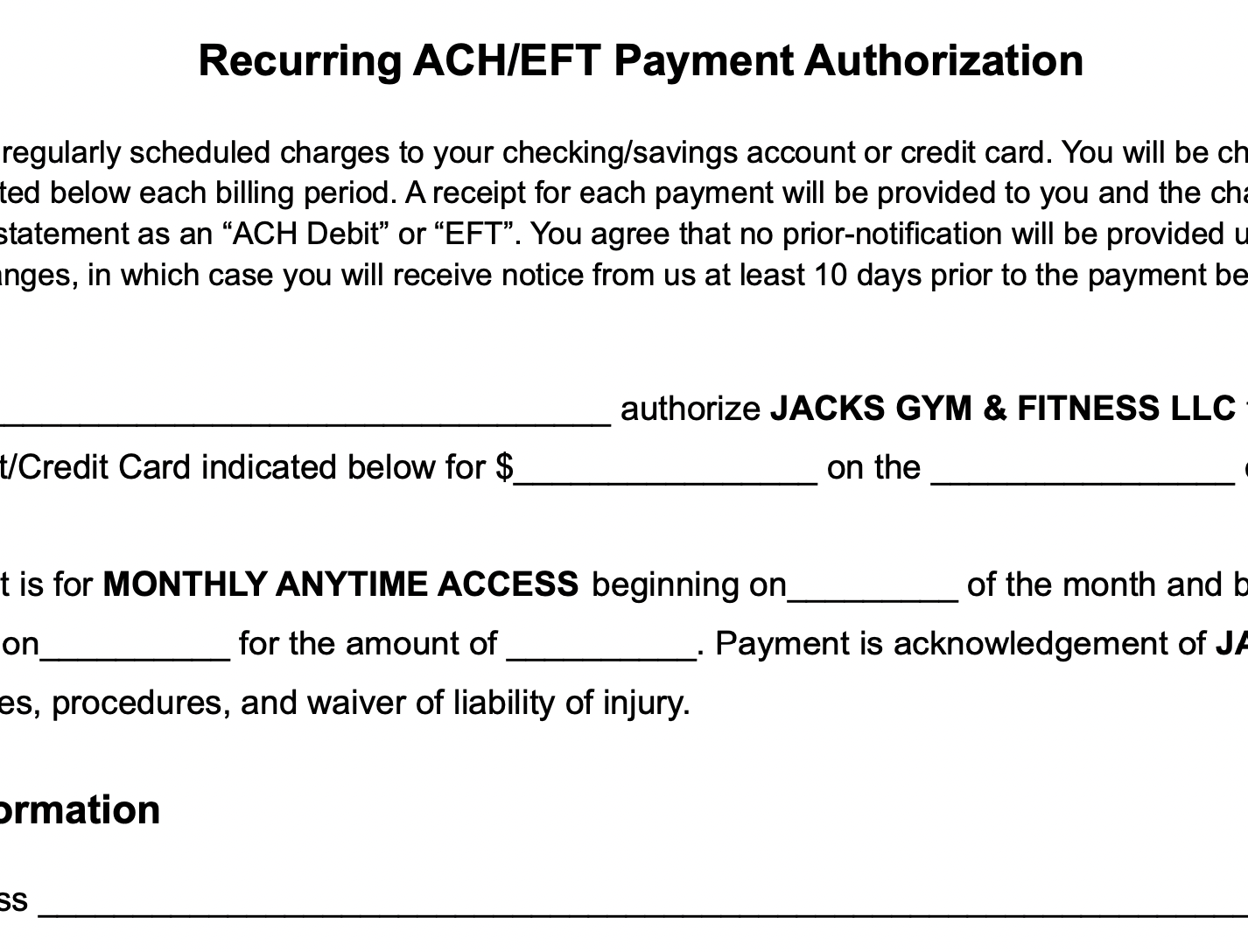 Sign Up ONLINE! EFT/ACH and Waiver Forms